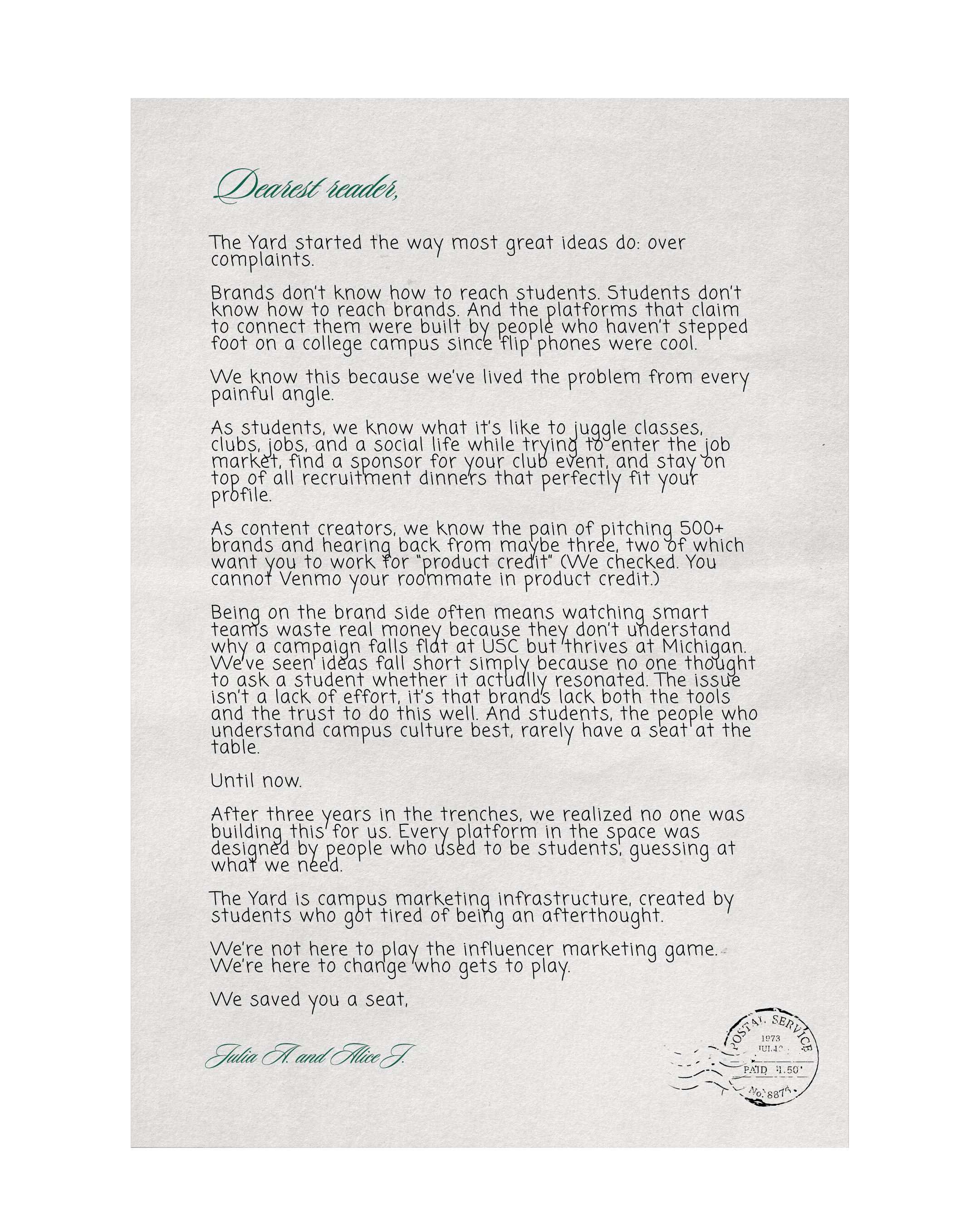 a letter from the founders